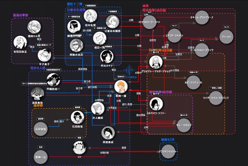 本ページではBLEACH 破面・出現篇に登場する主要キャラクターのキャラクター相関図、キャラクター一覧を掲載しています。
