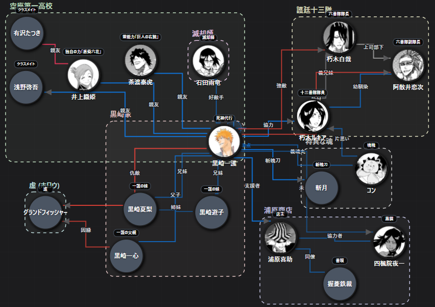 本ページでは『BLEACH 死神代行篇』に登場する主要キャラクターのキャラクター相関図、キャラクター一覧を掲載しています。