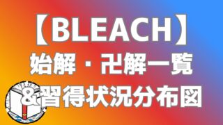 能力・技一覧 【BLEACH】始解・卍解一覧まとめ|キャラ別能力・習得状況を図解で整理 『BLEACH』の始解・卍解をキャラ別に一覧でまとめ、能力名や習得状況を図解で分かりやすく整理。卍解が使えるキャラや始解との違いも解説し、作品の理解が一気に深まります。 2026.04.11 能力・技一覧
