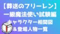 本記事では、旅立ち編~断頭台のアウラ編~ザインとの旅編(アニメ第1期の1級魔法使い試験編 直前)までを対象に、登場人物の関係性を相関図で整理しています。