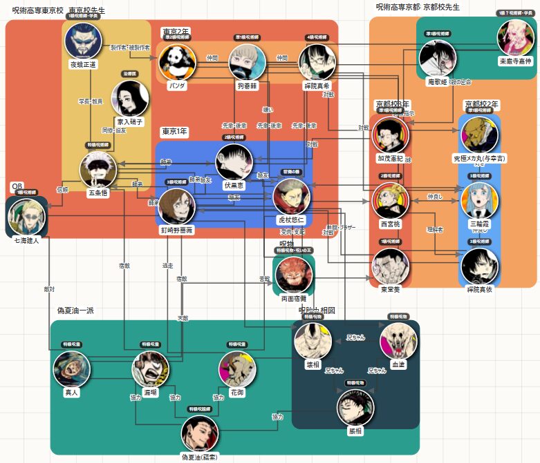 呪術廻戦 序盤~京都姉妹校交流会編 相関図(キャラ関係・勢力図)
