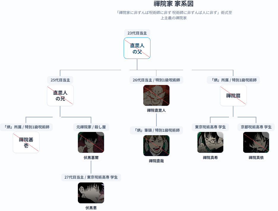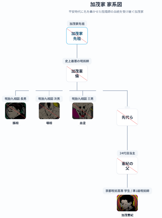 本記事では、五条家・禪院家・加茂家の家系図をもとに人物関係を解説します。