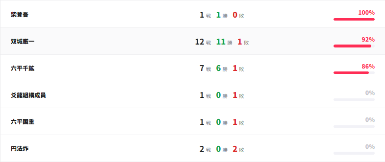 本ページでは、カグラバチ 序章~VS双城編で繰り広げられる戦闘の対戦結果、戦績ランキングを掲載しています。