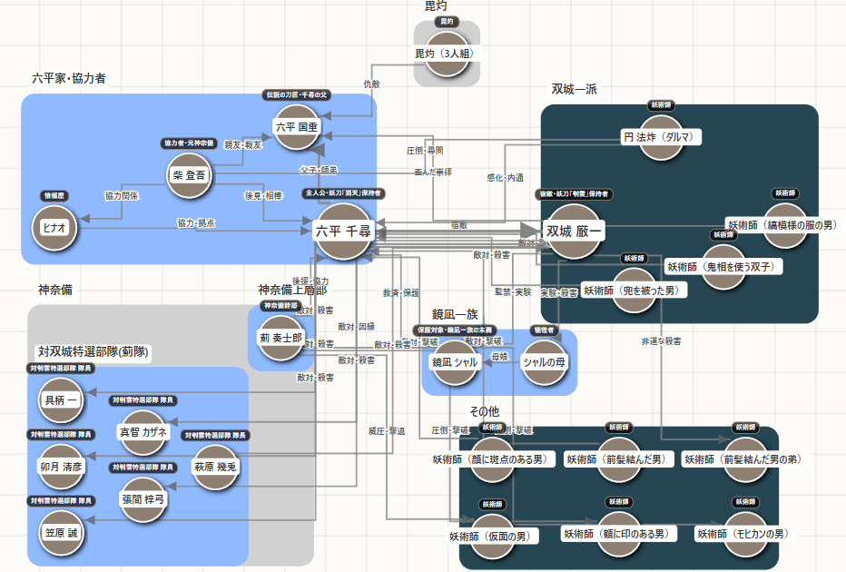 チヒロたち・双城一派・神奈備らの複雑な勢力関係や登場人物の立ち位置を、本記事では相関図で整理しています。