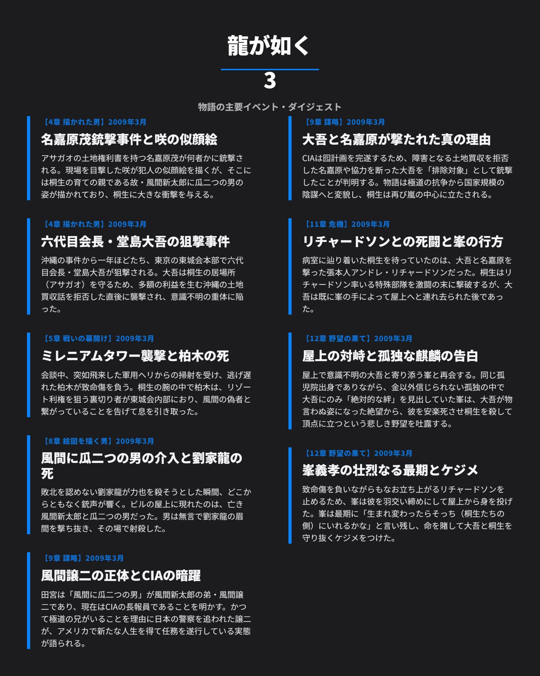 本ページでは龍が如く 3に登場する主要イベントの年表を掲載しています。