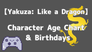 Age Chart 【Yakuza: Like a Dragon】Character Age Chart & Birthdays – Complete Age Chart This page features an age chart for all major characters in the 『Yakuz... 2026.02.01 Age Chart